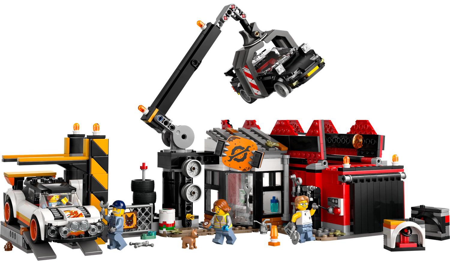 Bun-venit la LEGO® City Cimitir de masini vechi! Viziteaza magazinul care vinde piese de schimb recuperate, jante cool si anvelope de calitate la preturi avantajoase! Ia o cheie din cutia de scule si ajuta la demontarea pieselor din 2 automobile clasice din anii '80. Foloseste macaraua cu gheara si pune-le in concasor, apoi apasa o maneta pentru a le transforma in cuburi de fier vechi. Uimitor!