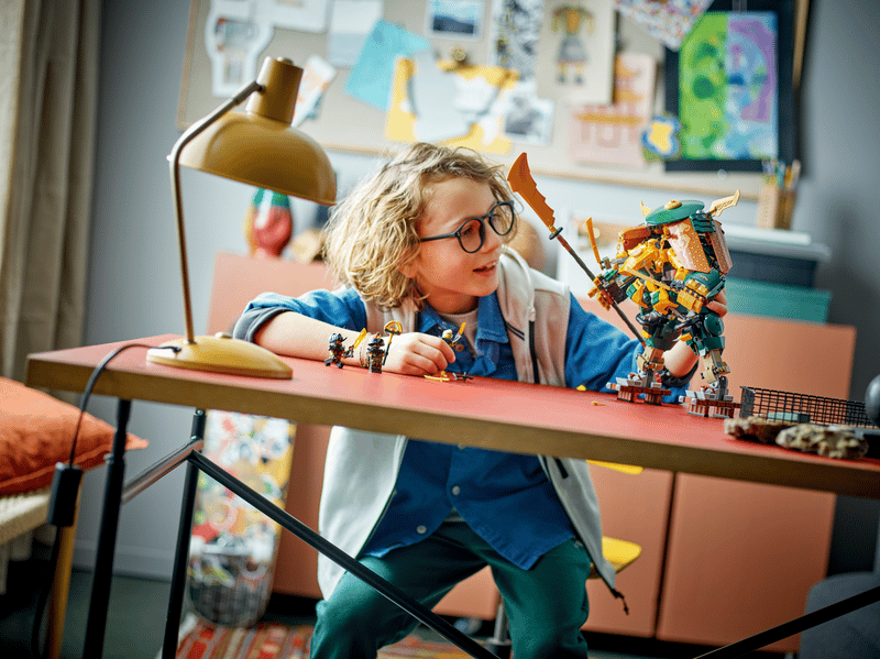 Copiii de 9+ ani pot interpreta scene palpitante de antrenament si lupte din seria TV NINJAGO® Dragons Rising cu setul Robotii din echipa ninja a lui Lloyd si Arin (71794). Acest set de constructie cu totul nou contine robotii articulati ai maestrului ninja Lloyd si discipolului sau Arin, care pot fi combinati pentru a crea un robot mai mare si foarte inarmat pentru joaca nelimitata.