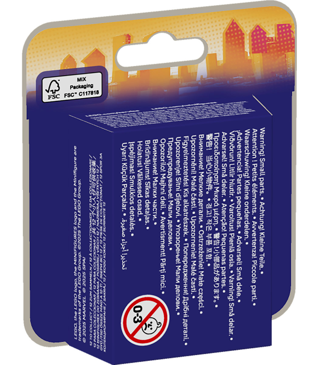 Toate cele 12 minifigurine LEGO Marvel construibile sunt pregatite pentru a fi folosite de copii la joaca si fiecare este oferita intr-o cutie misterioasa sigilata, cu cel putin 1 accesoriu si o brosura cu informatii pentru colectionari.