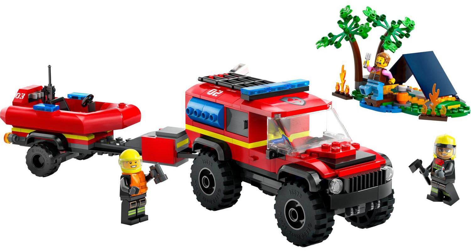 Seturile LEGO City Pompieri ofera jucarii pline cu dotari pe uscat, in aer si pe apa, pentru joaca imaginativa fara limite. Copiii pot adauga acest set Camion 4x4 si barca de pompieri la altele (vandute separat) din gama LEGO City pentru aventuri si mai palpitante.