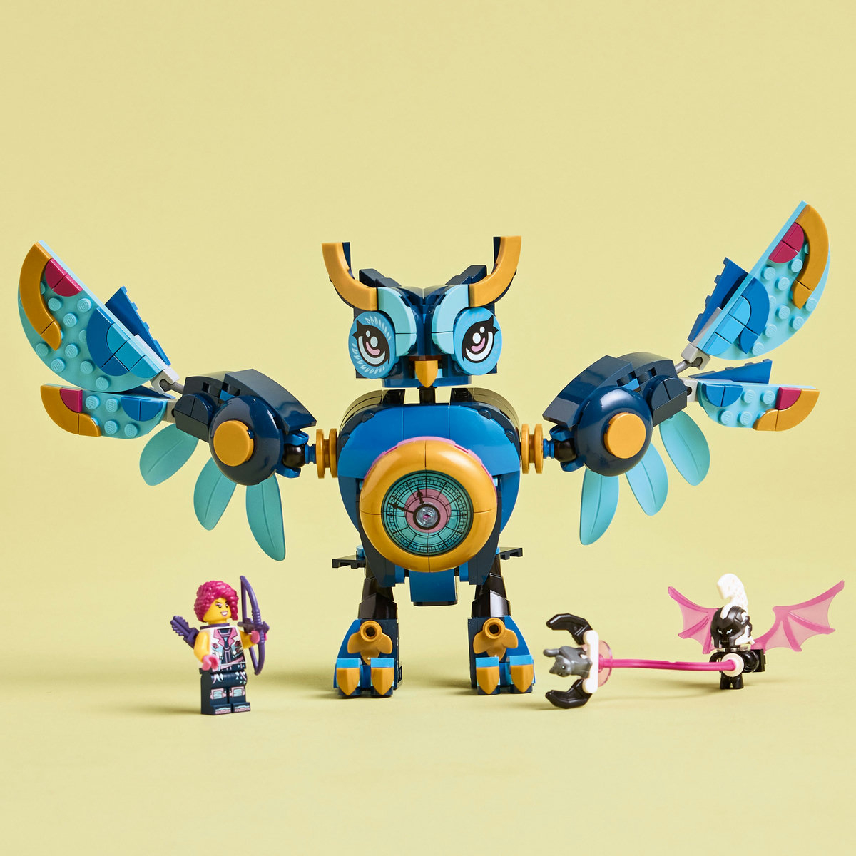 Un Monstrulet cibernetic a rapit-o pe Kitty, pisica lui Zoey, iar copiii trebuie s-o ajute pe Zoey s-o salveze! Creativitatea micilor visatori va prinde aripi pe masura ce construiesc modelul de bufnita, pe care apoi il pot transforma intr-o bufnita a timpului sau intr-o barca-bufnita de jucarie. In ambele moduri, bufnita are capul, aripile, picioarele si degetele de la picioare articulate si contine o multime de detalii interesante, inclusiv un ceas. Setul include si o minifigurina Zoey, o figurina Kitty si o figurina Monstrulet cibernetic, care dau viata povestii si incurajeaza joaca fantezista pe roluri.