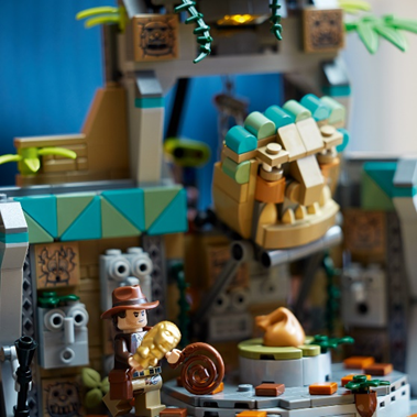 Acest model LEGO Indiana Jones de colectie include 4 minifigurine – Indiana Jones, Satipo, Belloq si un razboinic Hovitos – si numeroase functii interactive. Modelul are un soclu cu 4 butoane cu care poti cobori sau lumina idolul, darama un zid, face pe Indiana Jones sa se legene dintr-o parte in alta a unei grote, cobori o trapa si vedea pe Indiana cum e urmarit de un bolovan masiv.