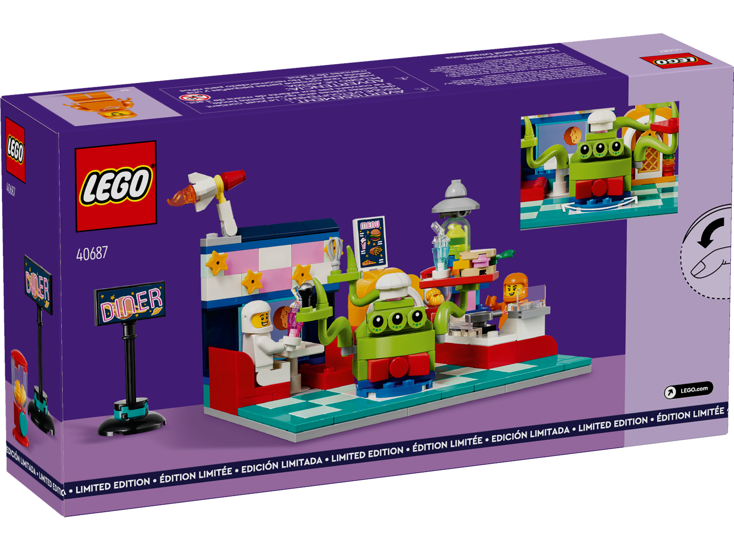 Hrănește creativitatea la acest LEGO® Restaurant în spațiul extraterestru (40687), o jucărie spațială atractivă pentru copiii de 6 ani și mai mari cu apetit pentru aventuri intergalactice. Cu 2 minifigurine astronaut, setul abundă în oportunități de joacă de roluri. Soarbe un milkshake lângă o fereastră cu vedere spre o altă planetă, comandă un burger gustos de la un chelner extraterestru și distrează-te dansând pe muzica de la tonomat la acest restaurant stelar. Pentru mai multă distracție nemaipomenită, există și o zonă de bucătărie cu sertare care se deschid și un meniu. Poftă bună!