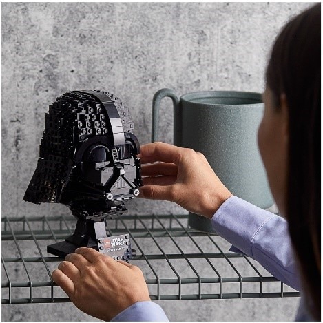 Casca Darth Vader este de dimensiuni compacte si are un stativ de expunere cu o placuta cu nume pentru a completa impresionantul punct de atractie, care va imbunatati decorul locuintei sau biroului tau. Vezi si cealalta casca LEGO Star Wars noua din mai 2021, construita pentru expunere: Casca Scout Trooper (75305).